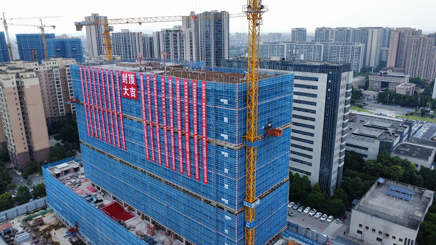 該項目位于崇州市永康東路崇州市人民醫院內,總建筑面積約8.5萬平方米。項目建成后,將顯著提升醫院接診能力和醫療服務水平,為轄區居民提供更加舒適、便捷的現代化醫療服務,進一步優化崇州市醫療衛生資源配置。自開工建設以來,項目部精心組織、科學管理,嚴格把控施工質量與安全,確保工程高效推進。在封頂沖刺的關鍵階段,面對高溫天氣的嚴峻考驗,項目團隊采取“錯峰施工”模式,切實做好建設者健康保障工作,確保工程進度與施工安全兩不誤,如期實現全面封頂節點目標。